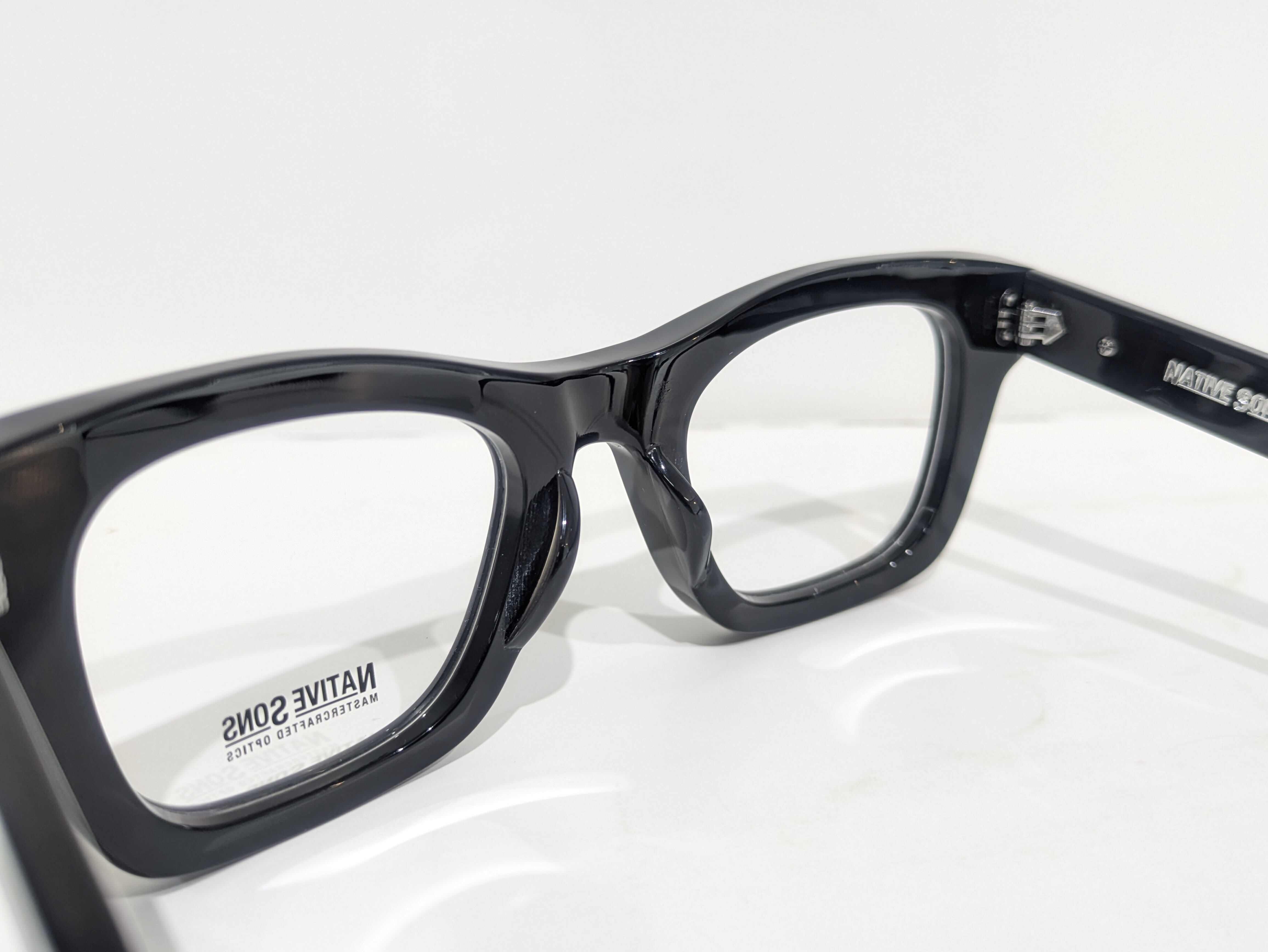 7mm厚のアセテート生地で製作されているFIGHTING IRISHシリーズ。なだらかに吊りあがるブロウラインが特徴的なウェリントンタイプ。縦幅にゆとりをもたせ視野を確保。テレビジョンカットでレンズに奥行きを出しています。金属パーツは全てオリジナル。丁番を六角リベットによってがっちり固定しガタツキを抑えます。ネジはナットで固定され緩みを防ぎます。お馴染みのチタン製のプレートも配置されています。