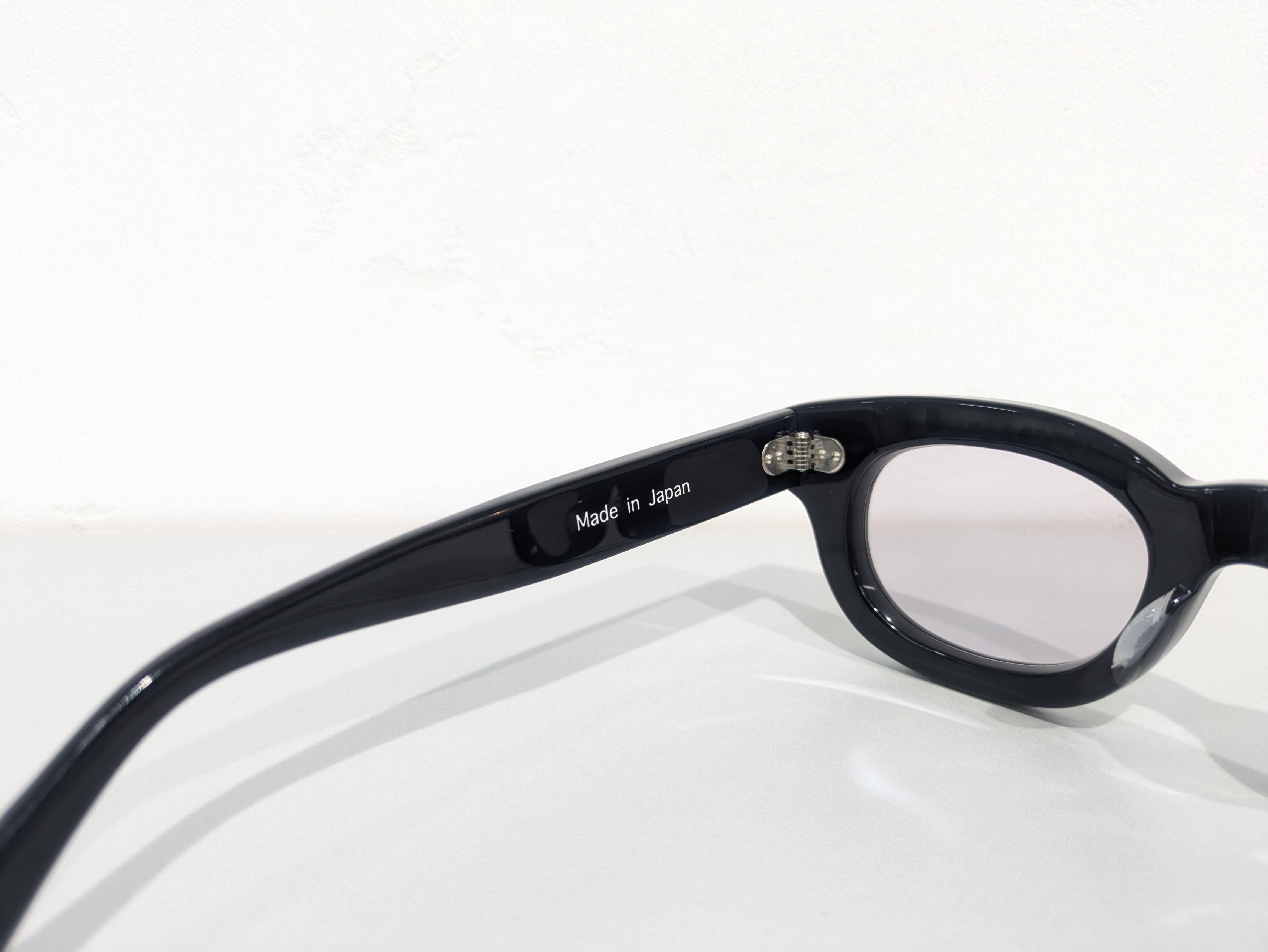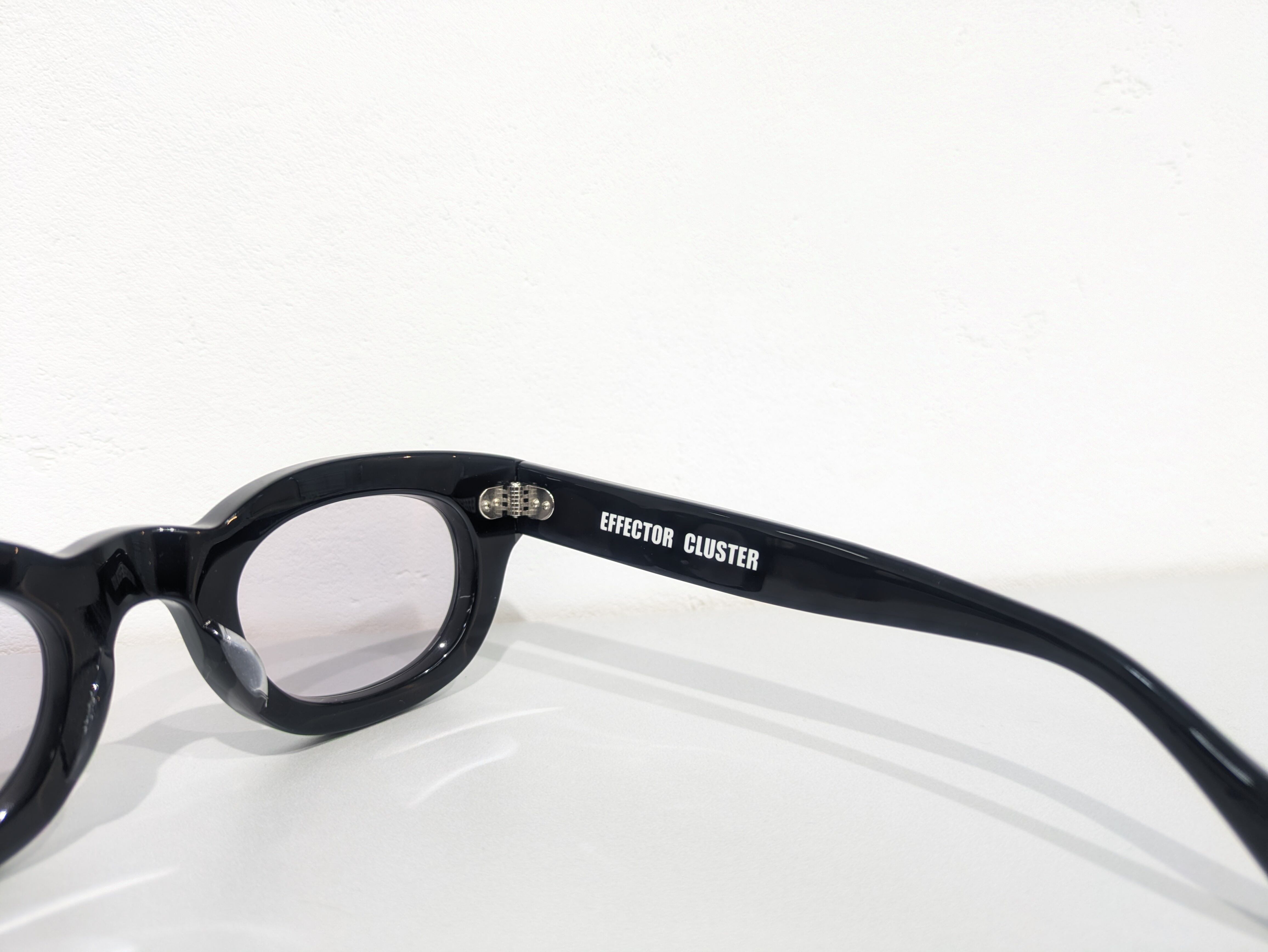天地幅が浅めで丸みのあるウェリントンタイプ。ブローライン、飾り鋲など代表作“fuzz”の派生モデルといった趣です。テンプルの形状も“fuzz”から継承されフィット感が抜群。EFFECTORの中でもリム幅が広めでインパクト大。