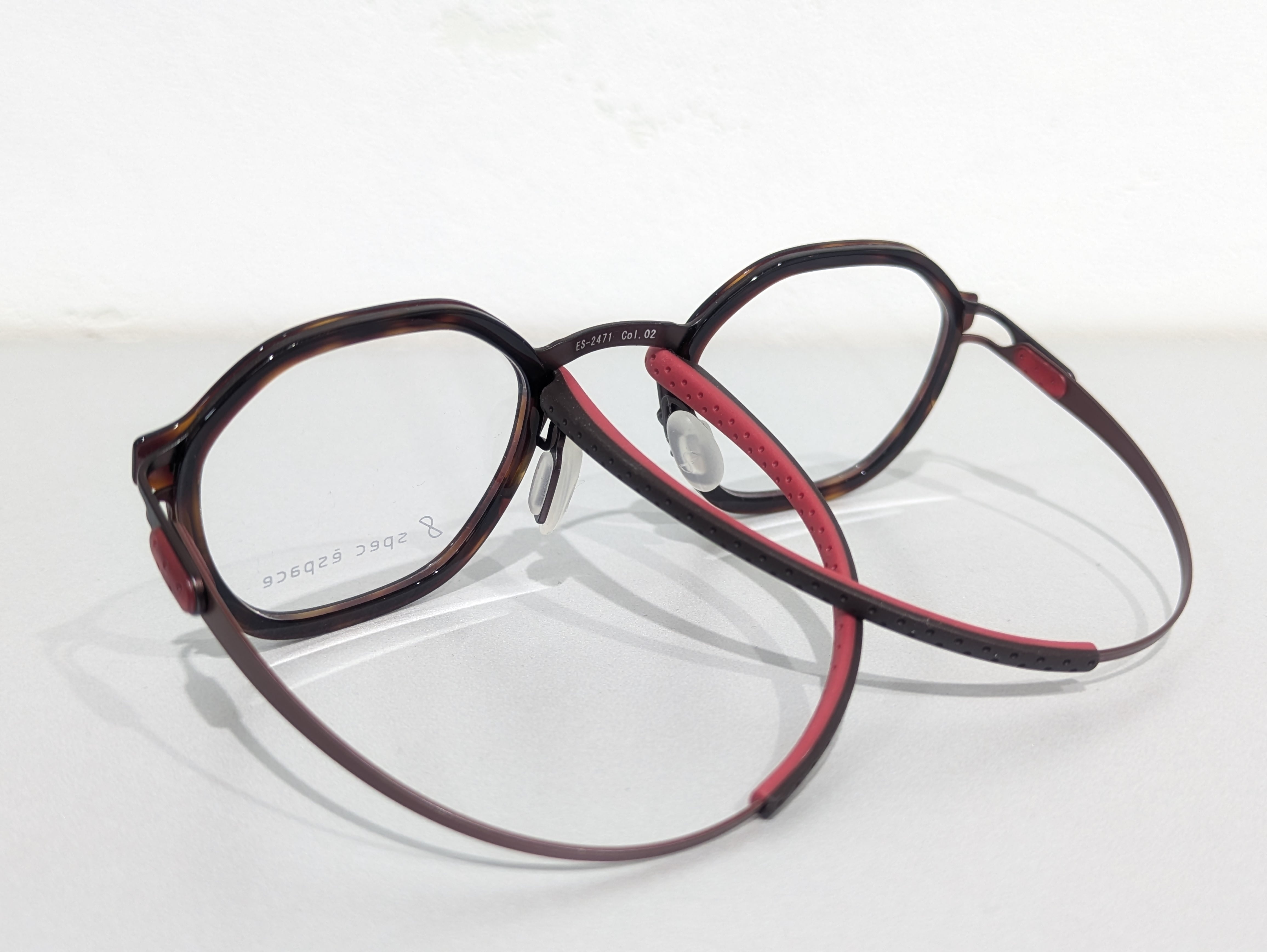 ニュアンスカラーのコンビネーションフレーム。全体をワントーンにスタイリングし、まとまり感のあるすっきりした見た目に。また小ぶりに設計したレンズシェイプは、強度近視の方やレンズの厚みでお悩みの方におすすめです。