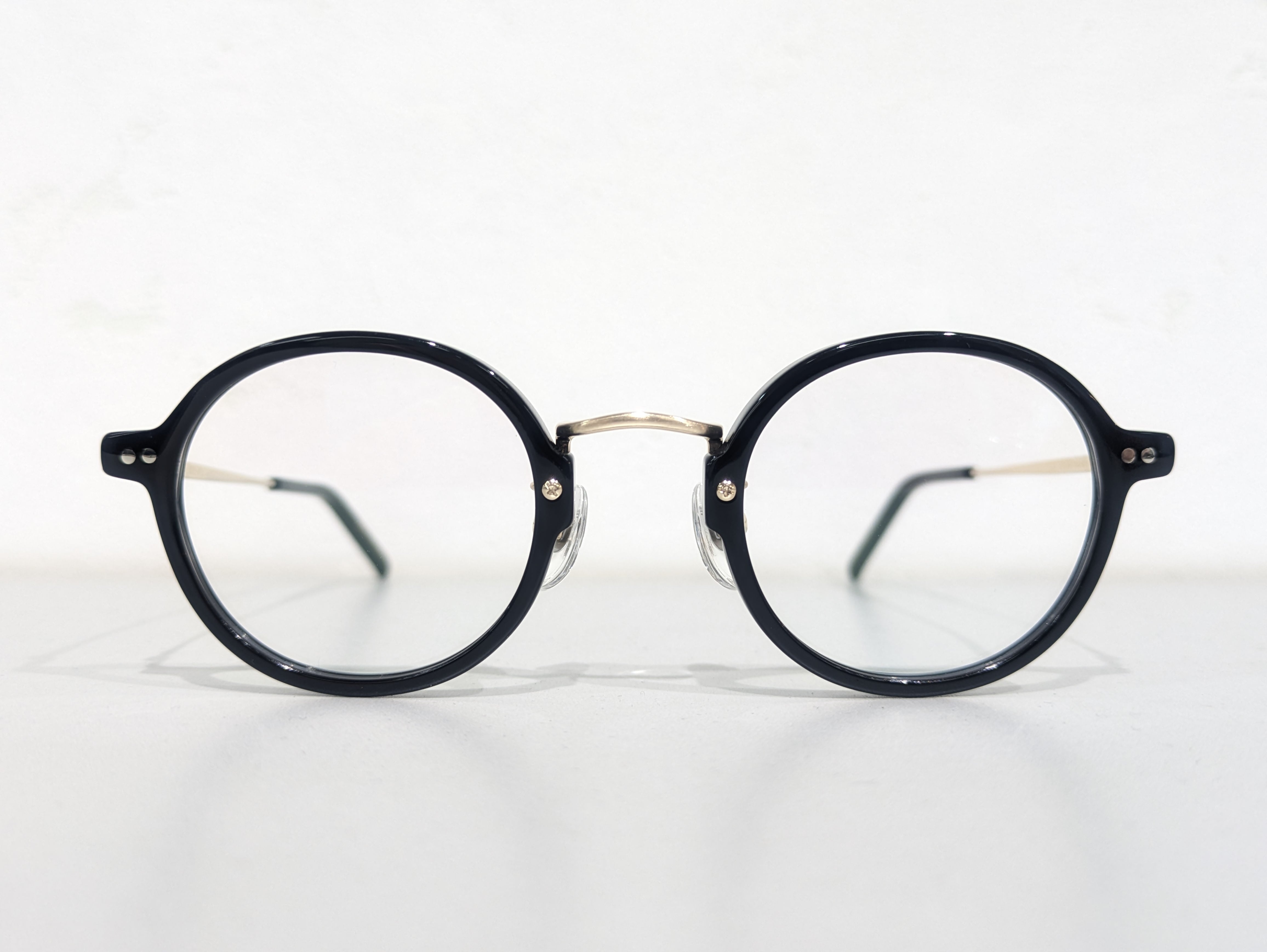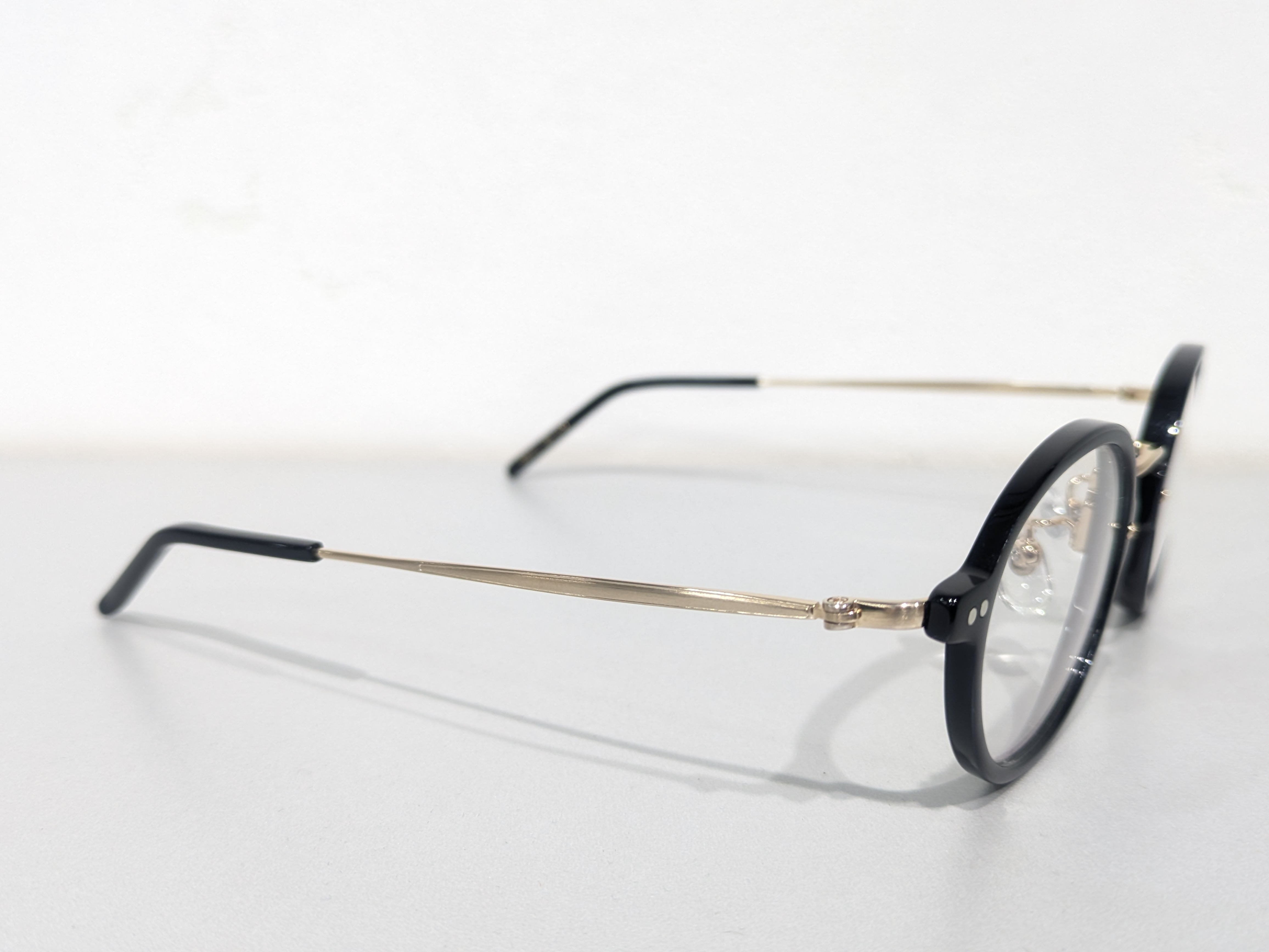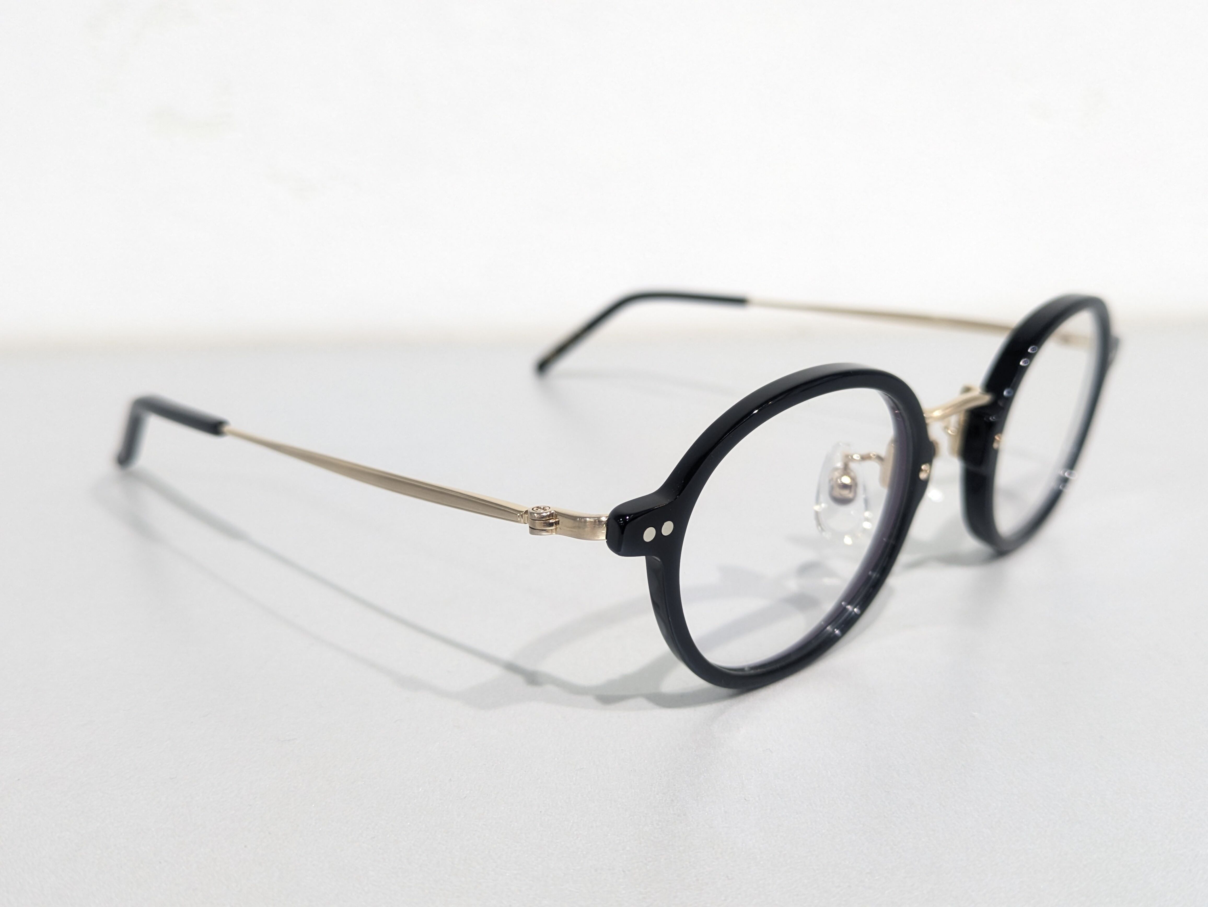 しっくりくる円でお馴染みのSTEADY丸眼鏡をそのままコンビネーションにしたような佇まいです。大き過ぎず小さ過ぎない王道のサイジングも踏襲されています。チタン製のブリッジとテンプルにはシャーリング加工が施されつや消しのような風合いに。さり気ないひと手間がSTEADYらしいです。