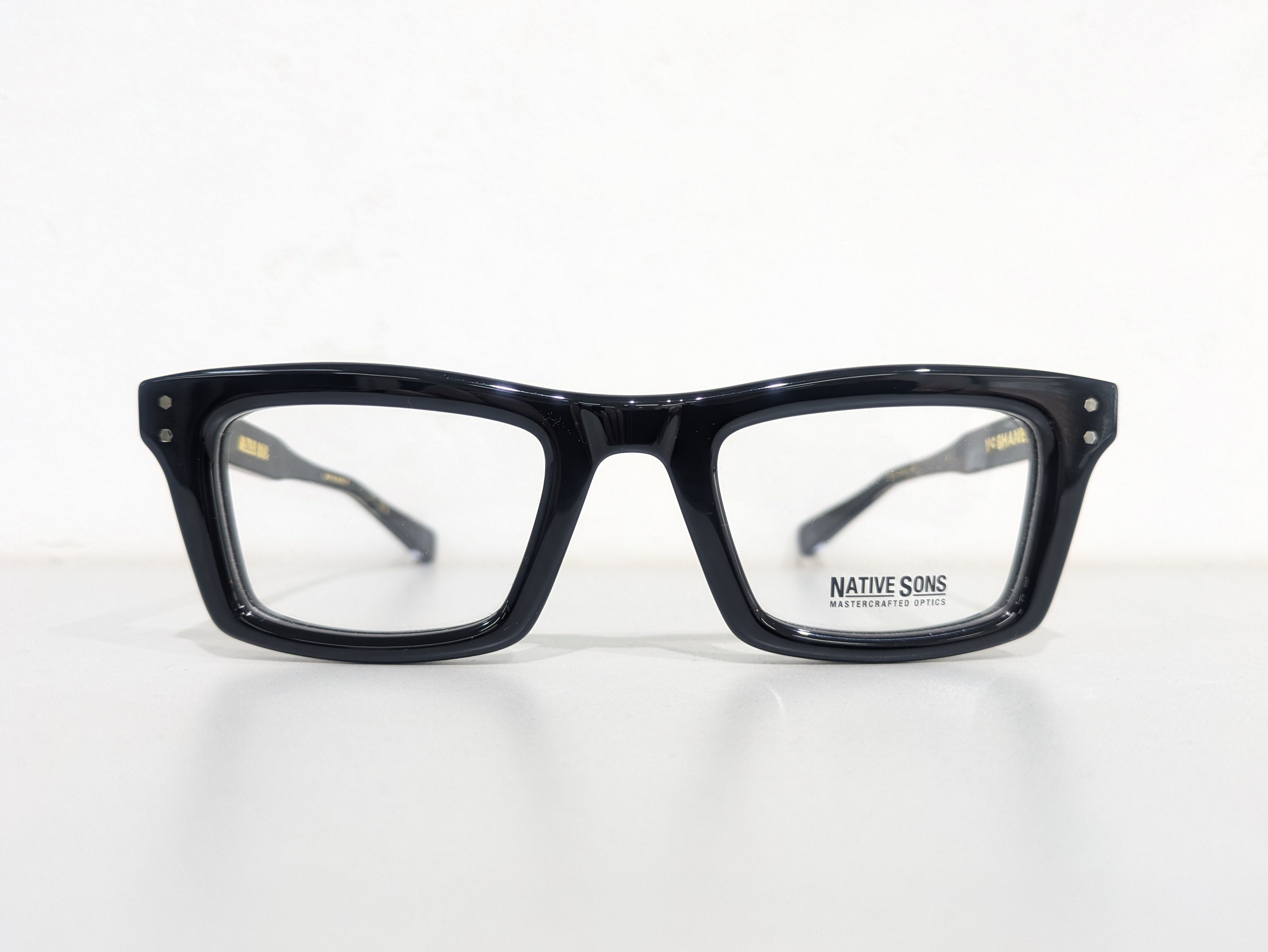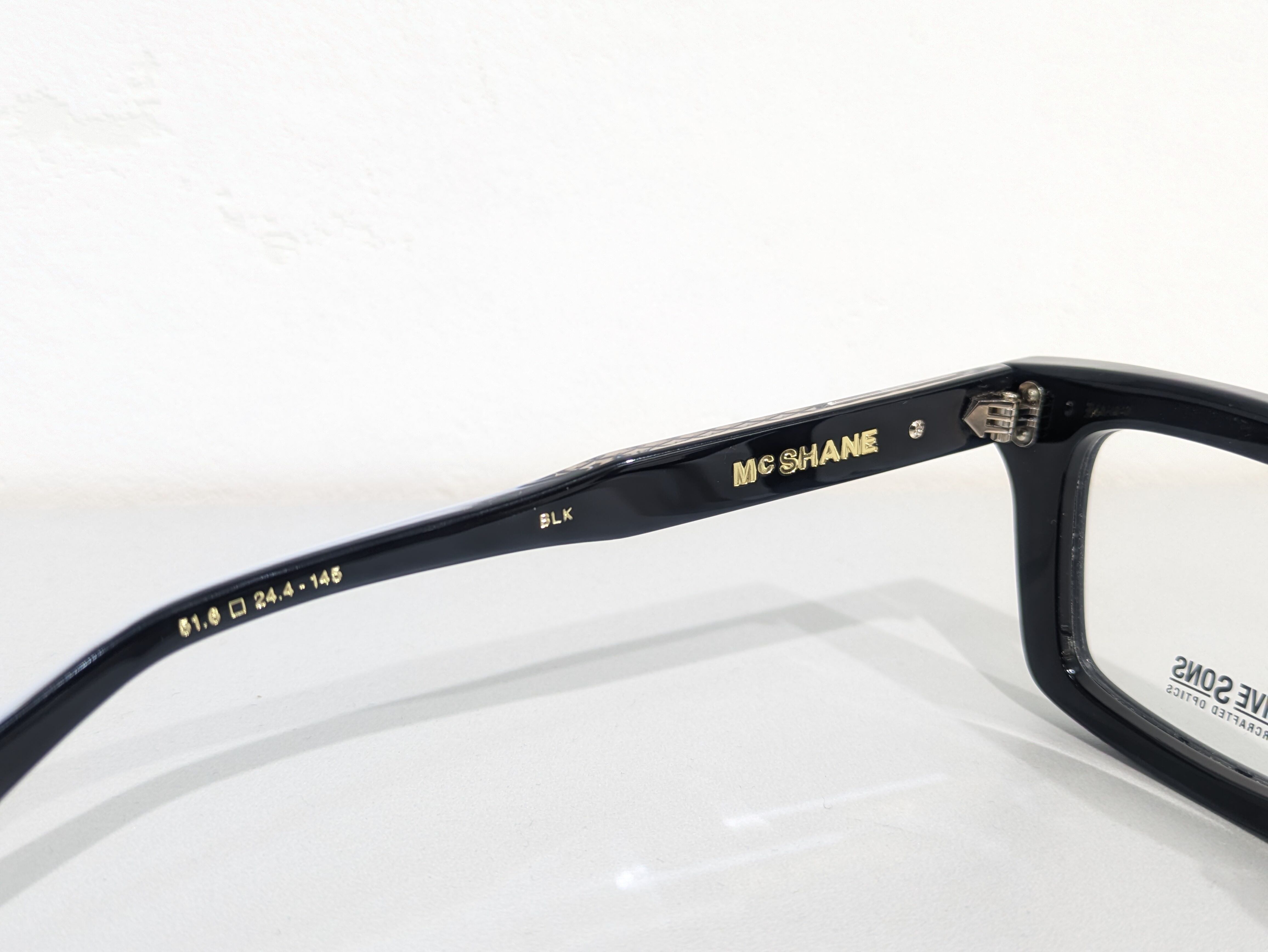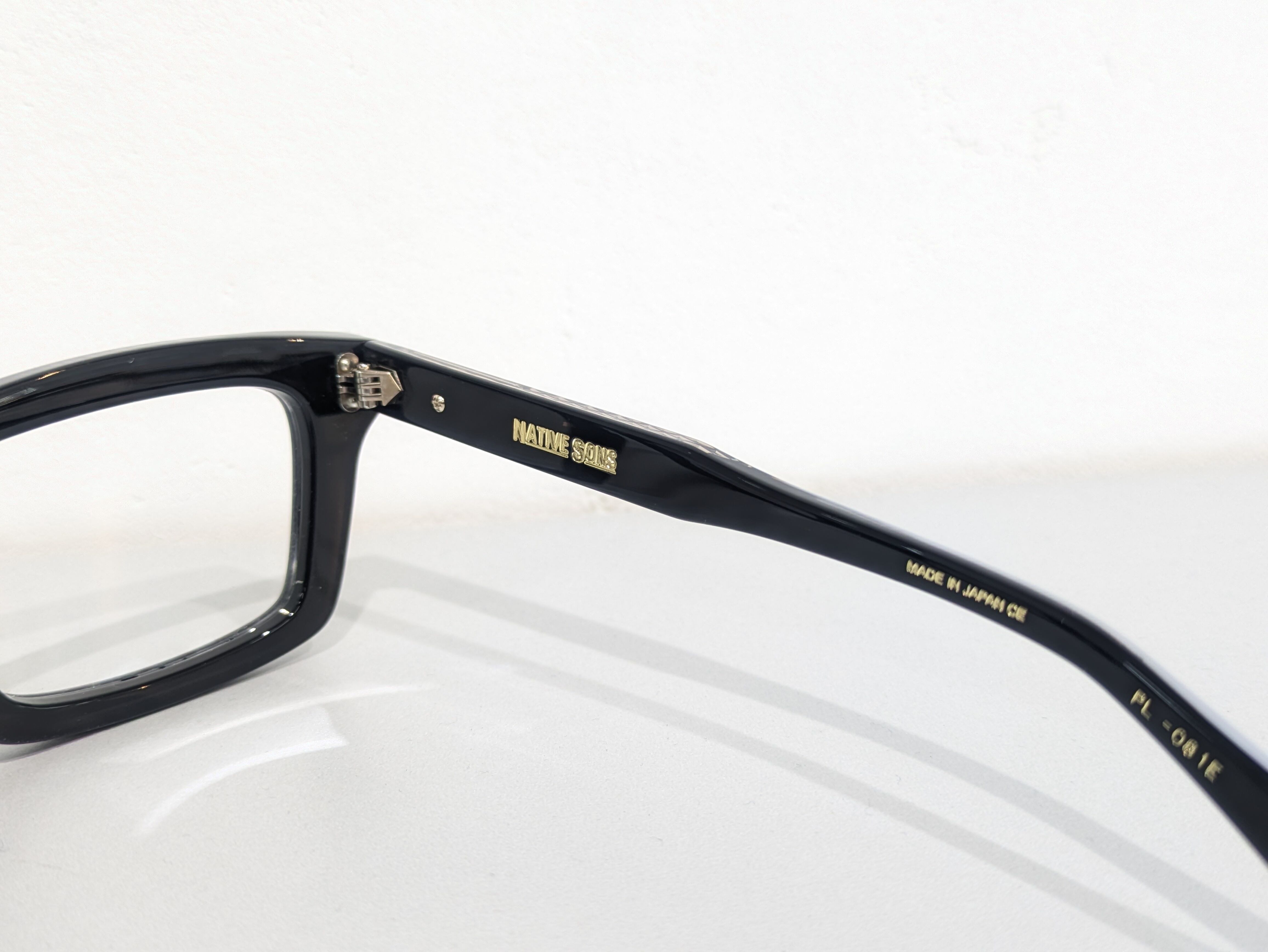 横幅が広くとても四角い形状でブロウラインにわずかなくぼみがあります。全体的にシャープで尖った雰囲気が漂っています。レンズ周りは1.6mmの深さのテレビジョンカットにより奥行き感を演出。テンプルは後方に向かって四角くなり形を整えながら耳に沿うように上下のバランスの違うテーパーラインを描いています。テンプルエンドは9mmの幅でスクエアオフ。調整しやすく抜群のフィット感です。コアワイヤーはダイヤモンド柄でさり気なく透けます。ブランドの象徴的なモーターヘッド型のチタンプレーンを配置。丁番もオリジナルで製作され5枚重ねでとても堅牢な作りです。ネジの緩みを防ぐためナットで固定。