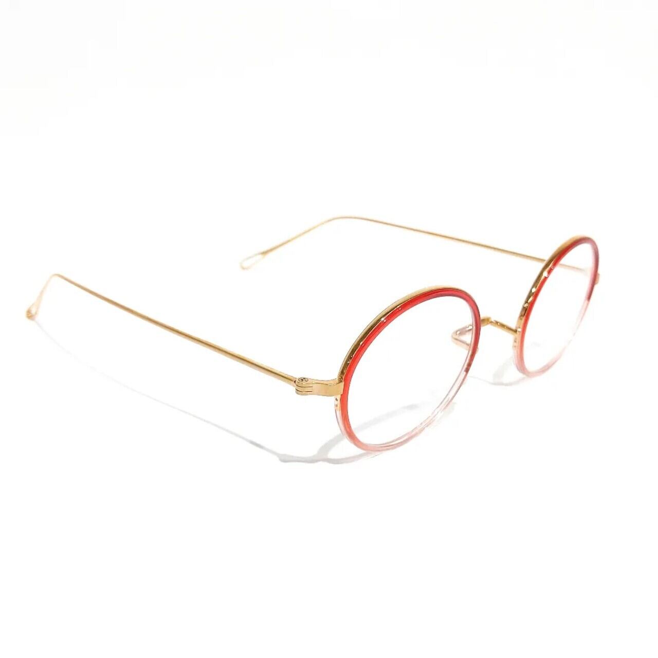 弾性の高いβチタンとアセテートを組み合わせたコンビネーション一山丸眼鏡。大き過ぎず小さ過ぎずで丸眼鏡の王道のサイズ感です。ハーフリムで軽量化され、軽い掛け心地。一山がクラシカルな趣を醸し出してくれます。岡山店