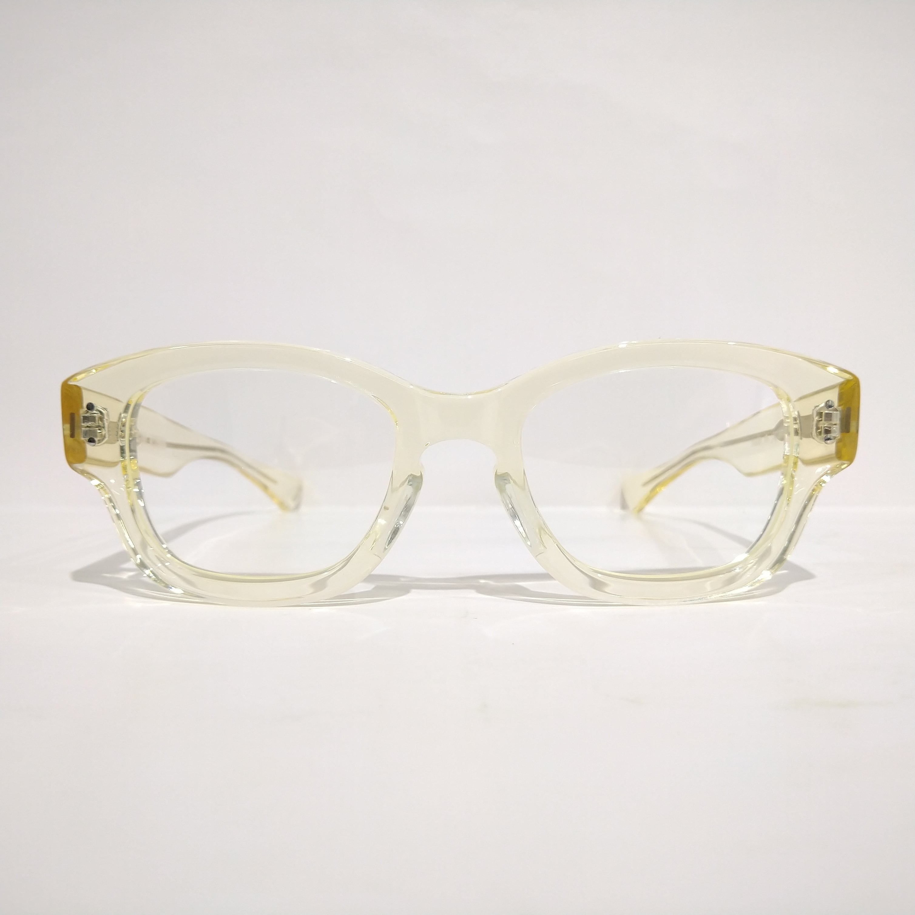 トレンドに囚われない「ザ・黒縁眼鏡」的な定番デザイン。サイドからテンプルへの存在感のある横顔と顔馴染みのよいフロントラインとのバランスの良さが秀逸。岡山店 倉敷店
