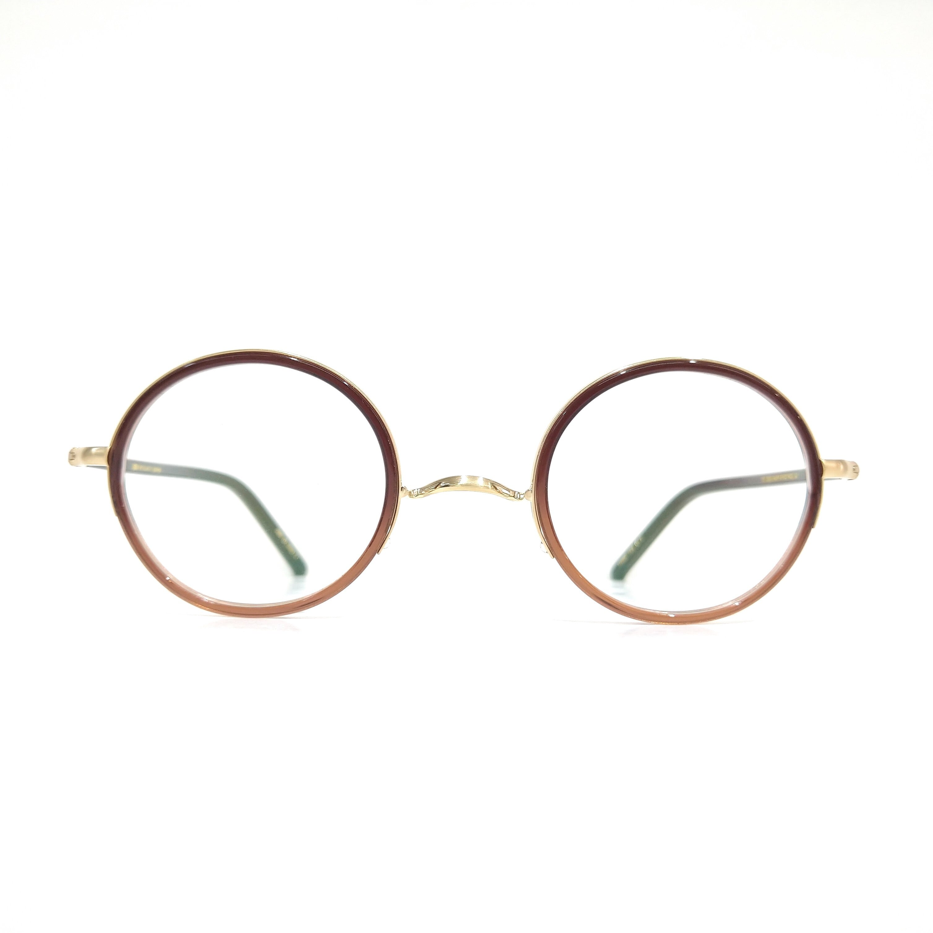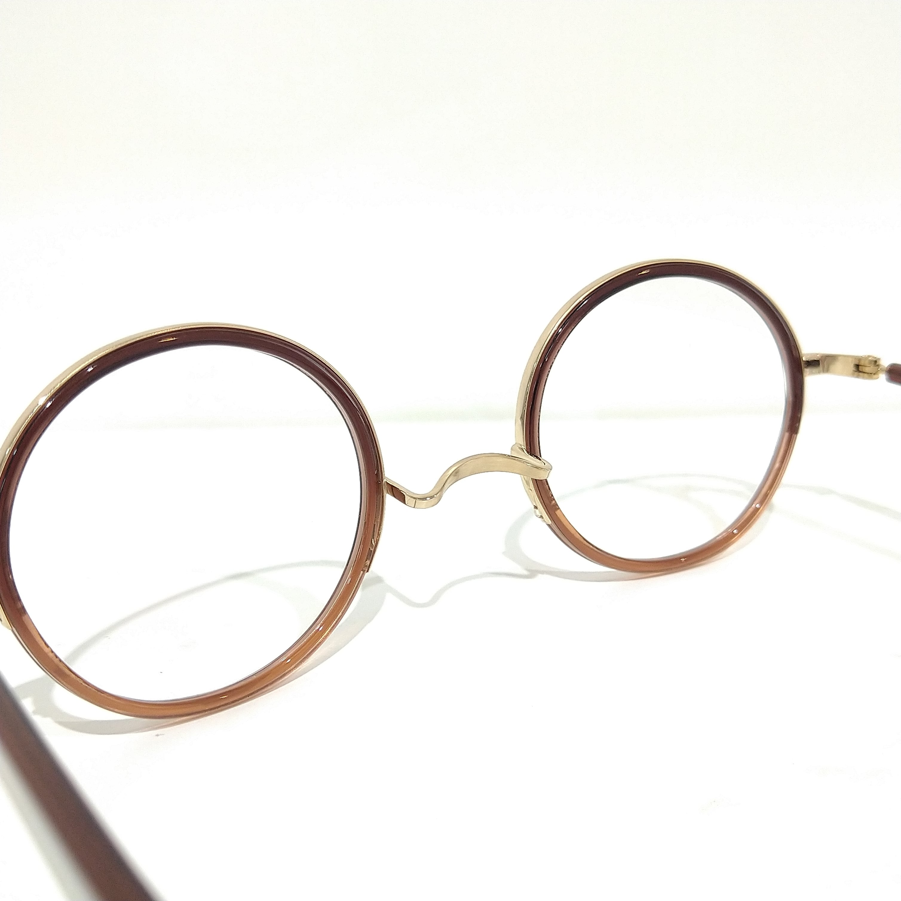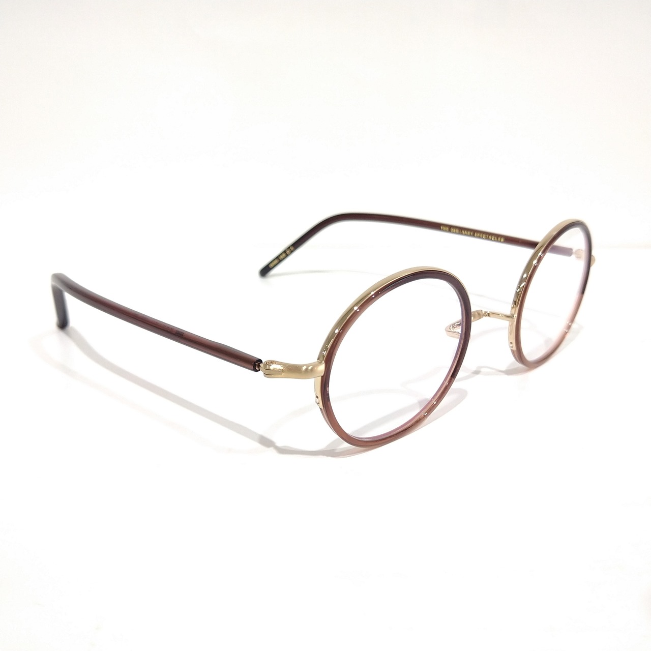 柔和な佇まいで人気の一山丸眼鏡にアセテート生地を組合せたコンビネーションフレーム。アセテートテンプルが顔を包み込むようにフィットしてズレを防ぎます。ブリッジ(鼻の位置)が通常よりも2mm下げてあるためズレたように見えない工夫がされています。岡山店